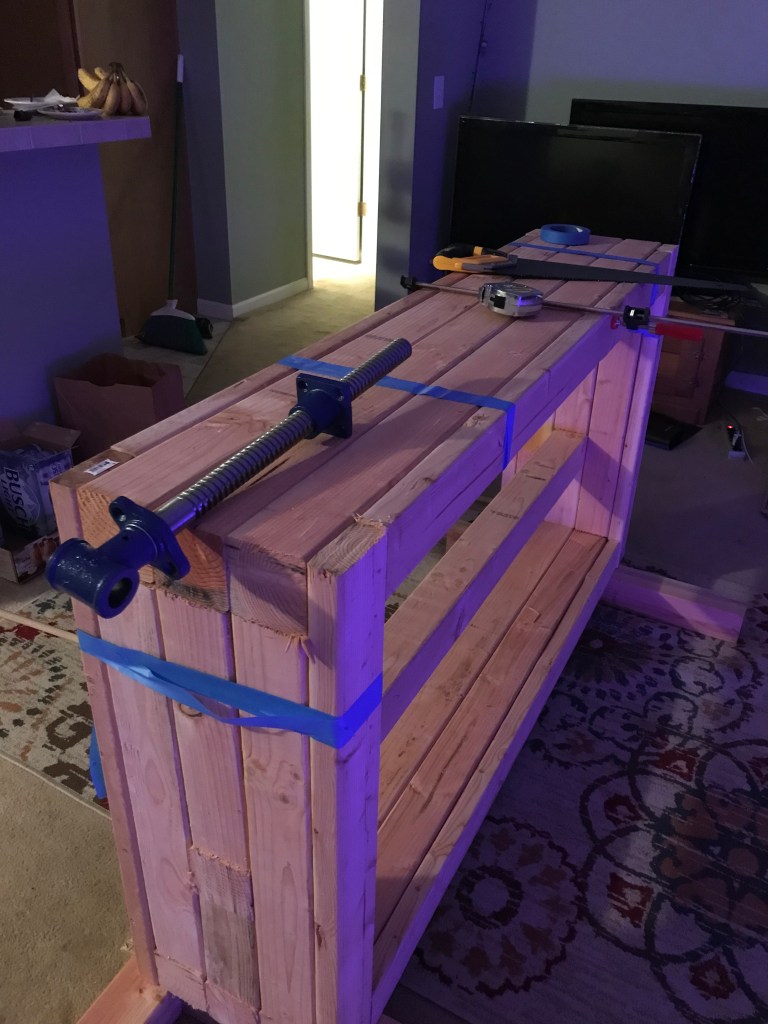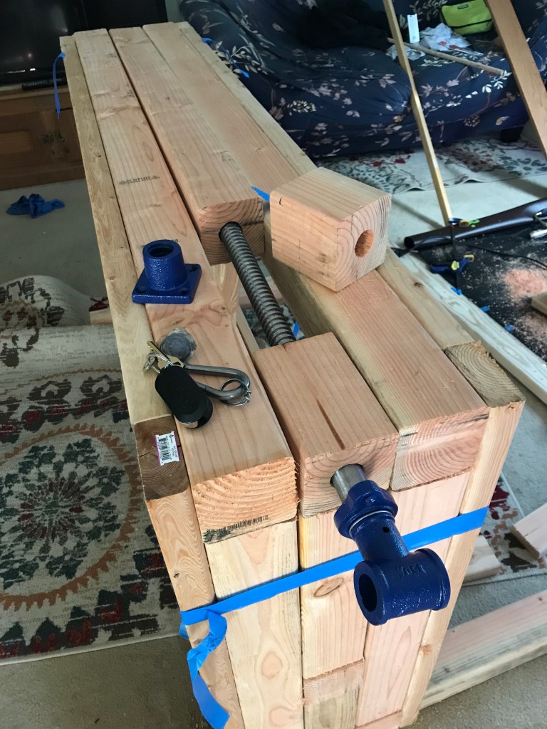 The Lordly work bench of house Chave. Inspired by English, French and Japanese tradition. The main feature of the bench is an inlayed wagon vise and a dog/ doghole system which allows the entire work surface to function as a clamp / compressional surface. The goal of this force multiplier is combine art and functional craft. Namely traditional wooden weapons / weapon systems. The side vise pictured will also be fitted for standard uses and more specifically bow making. I will name her… Alice.