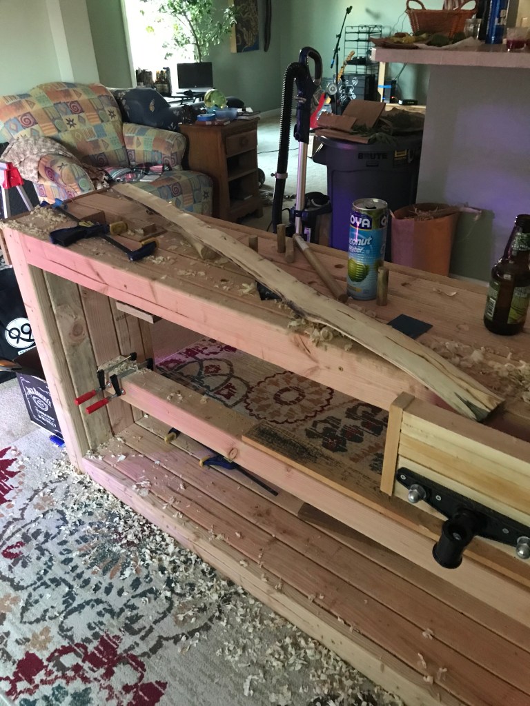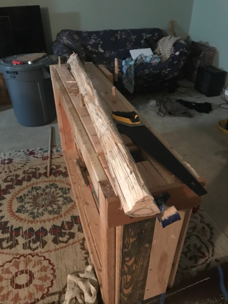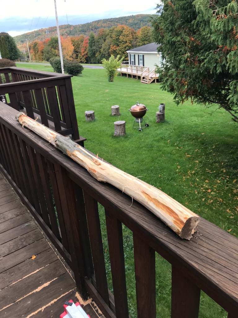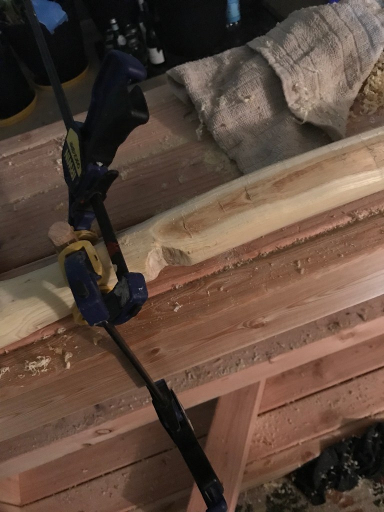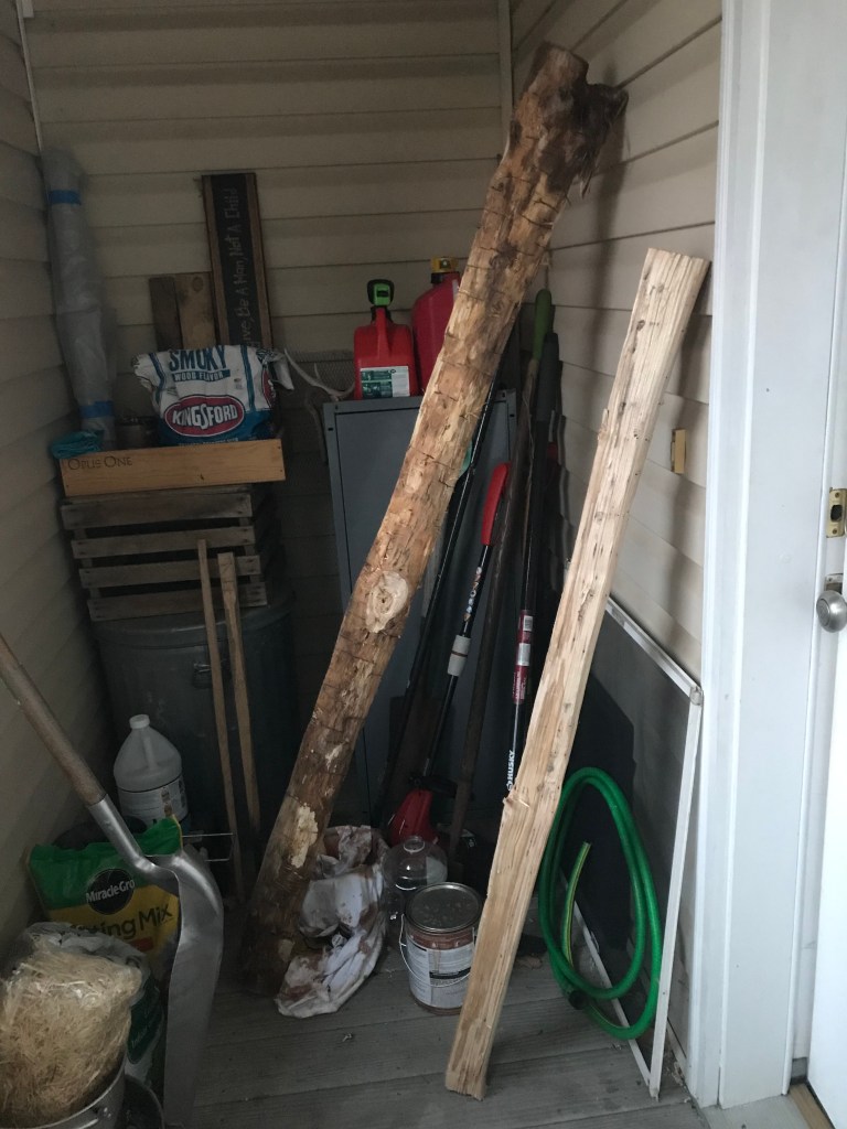 my Dad wrangled a peice of locust wood (yellow curvy guy) and i derived 2 staves from a downed maple (maybe) log (big straight beefy staves). The journey continues.ππΉ